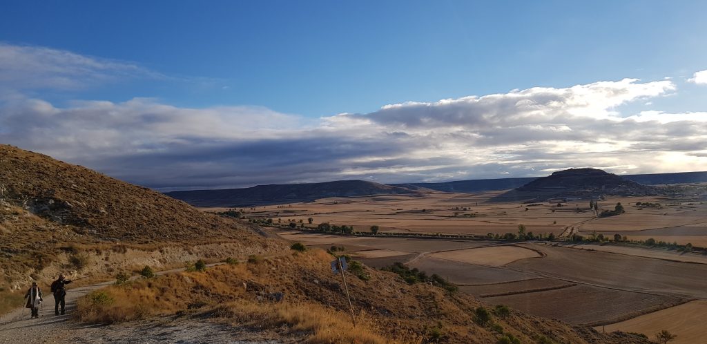 Meseta încă își face simțită prezența, însă astăzi drumul ne urcă și coboară prin dealuriși văi pustii dar ne și plimbă mult prin câmp deschis unde tot ce ai ca reper este linia orizontului.