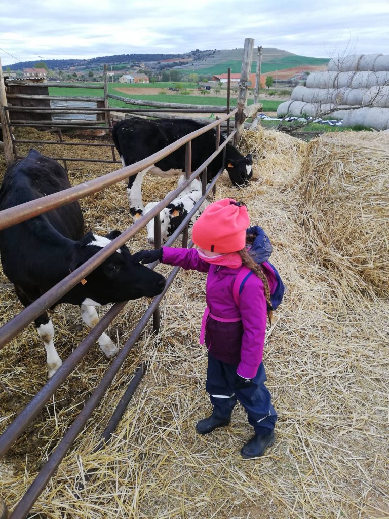 În drumul nostru dăm de o fermă și, de după gard, câțiva viței mă cheamă să îi mângâi.