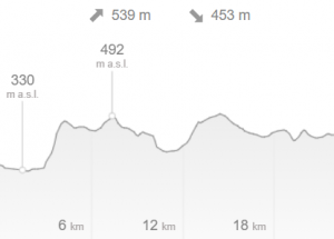 Traseul are câteva urcări și coborâri, unele mai abrupte decât altele, însă traseul este destul de echilibrat.