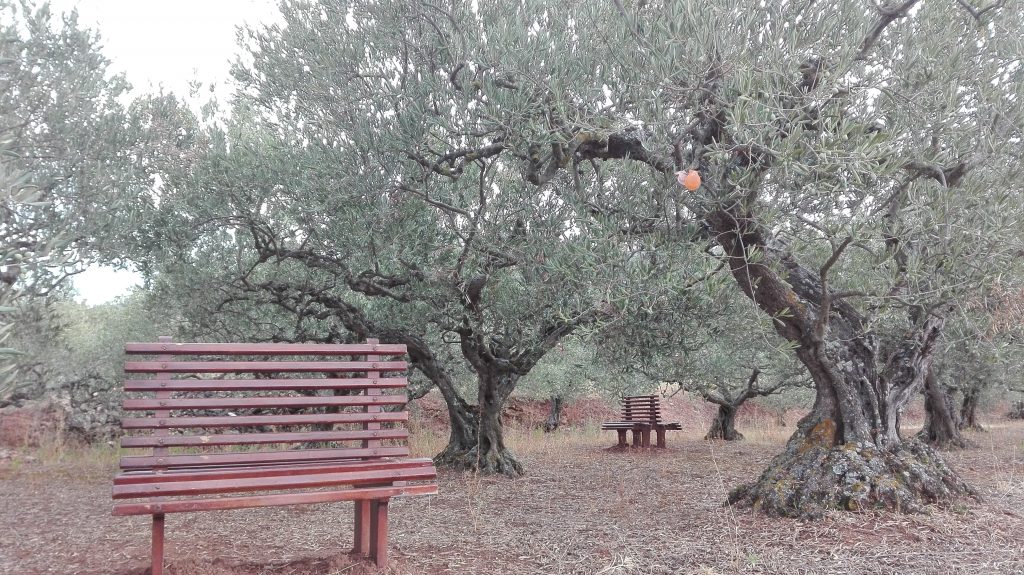 Mă duc să privesc mai de aproape și mă lămuresc. Cineva doar a agățat niște scoici în măslin. Nu cresc ele aici. Oare ăsta e cu adevărat măslin? Hmmmm…