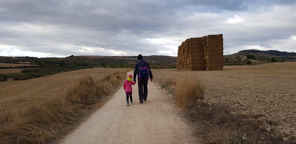 Drumul continuă prin vii, așa cum ne-a obișnuit până acum. Ai mei spun că zona asta e foarte cunoscută pentru vin. Și se pare că și pentru baloți de fân căci văd în departare unii înalți cât casa. Unul e chiar lângă drum, abia aștept să ajung acolo să sar în el. Îmi imaginez doar cât de pufos este.