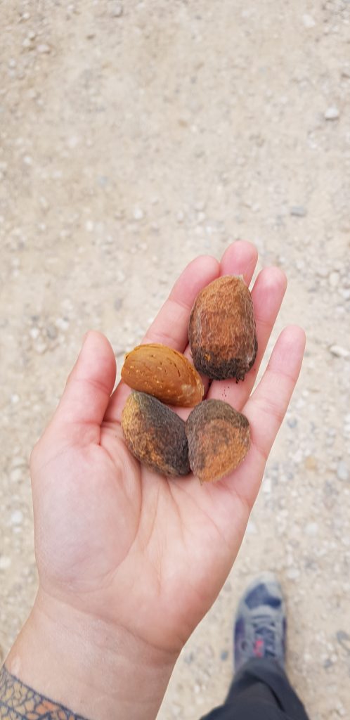 La o mică pauză găsim un copac ce se aseamănă unui măslin mai mare. Dar parcă nu este tot aia. Mamarmot se apucă să culeagă câte ceva și îmi întinde și mie.