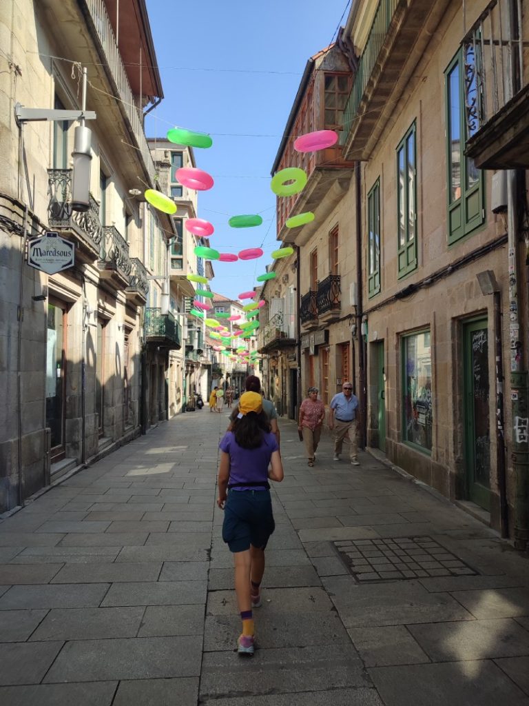 După câteva străduțe pe sub colace și poduri, dăm de un alt traseu ce duce la Compostela. Înainte ca Mamarmot să apuce să spună ceva, răspunsul este nu. Cu siguranța este mai lung. Dar desigur, eu nu o pot opri să se zgâiască la panourile informative.