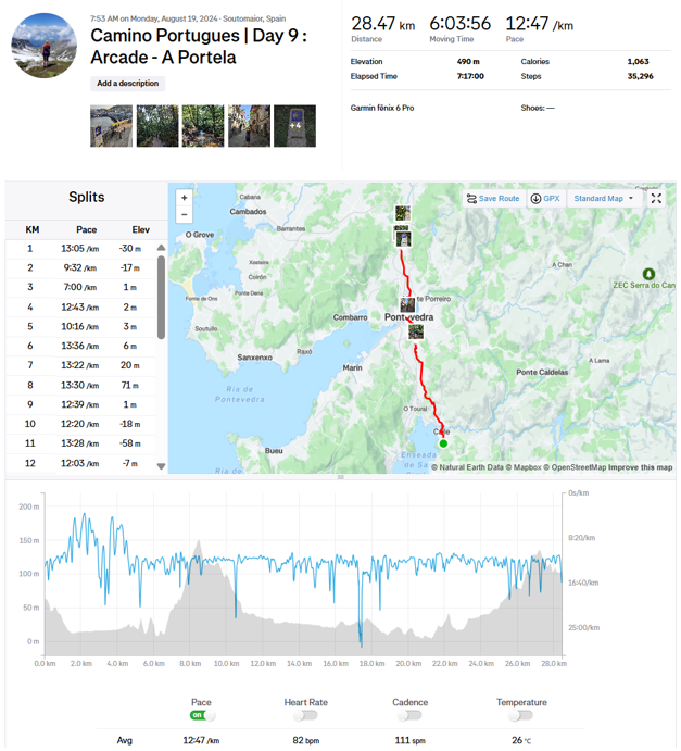 La capătul pădurii găsim micul orășel numit A Portela, unde vom dormi la noapte. Printre singurele 5 clădiri din acest orășel se află și alberguele nostru. Înăuntru, îl întâlnim pe Pedro, care ne explică regulile „casei” și ne conduce la paturile noastre. Pereții sunt plini de desene faine și una dintre reguli este că …e liber la desenat! Abia aștept!