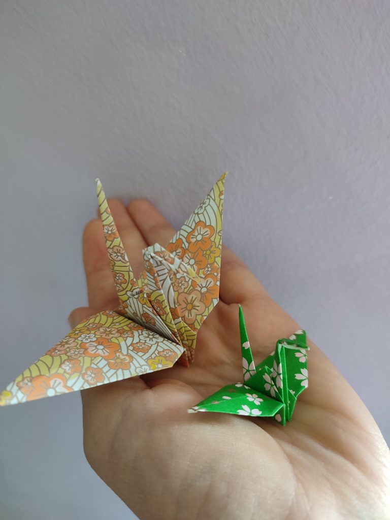 Ai mei îmi spun că aceia sunt doi cocori de hârtie. Mama și puiul!