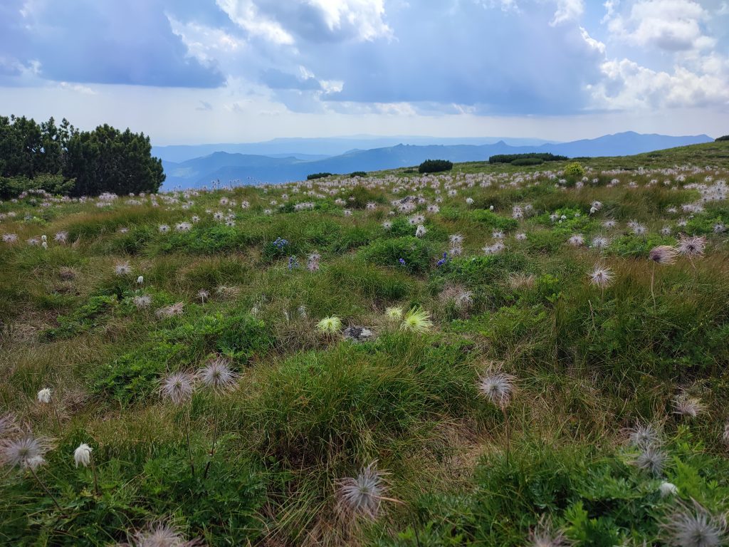 The trail shows us the wilderness of the Călimani mountains, walking us on the first segments through meadows and mountain pines. The ascent towards Negoiu Unguresc peak, takes us to the crest, opening up fairytale sights around us.