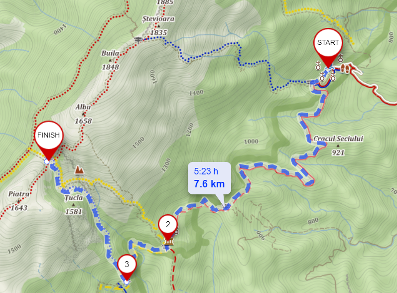 - Surse de apă: un izvor la ~150m înainte de Curmătura Builei. Mai este un izvor în direcția opusă, în pădure, însă noi nu l-am văzut.