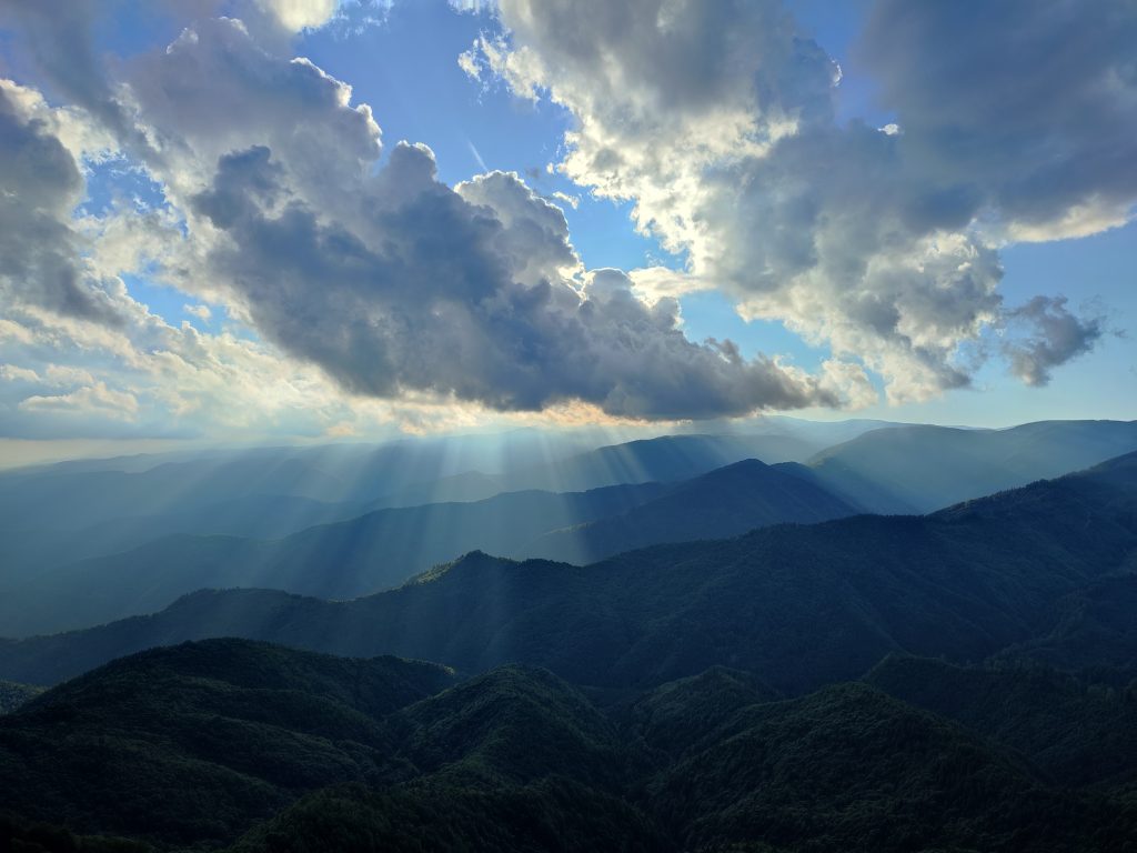 Soarele luminează acum toate culmile din fața noastră și îi învelește precum o pătură.