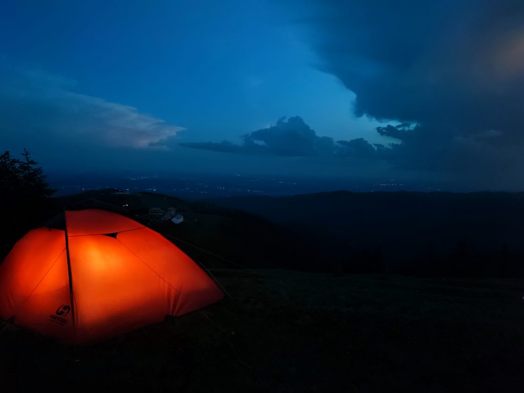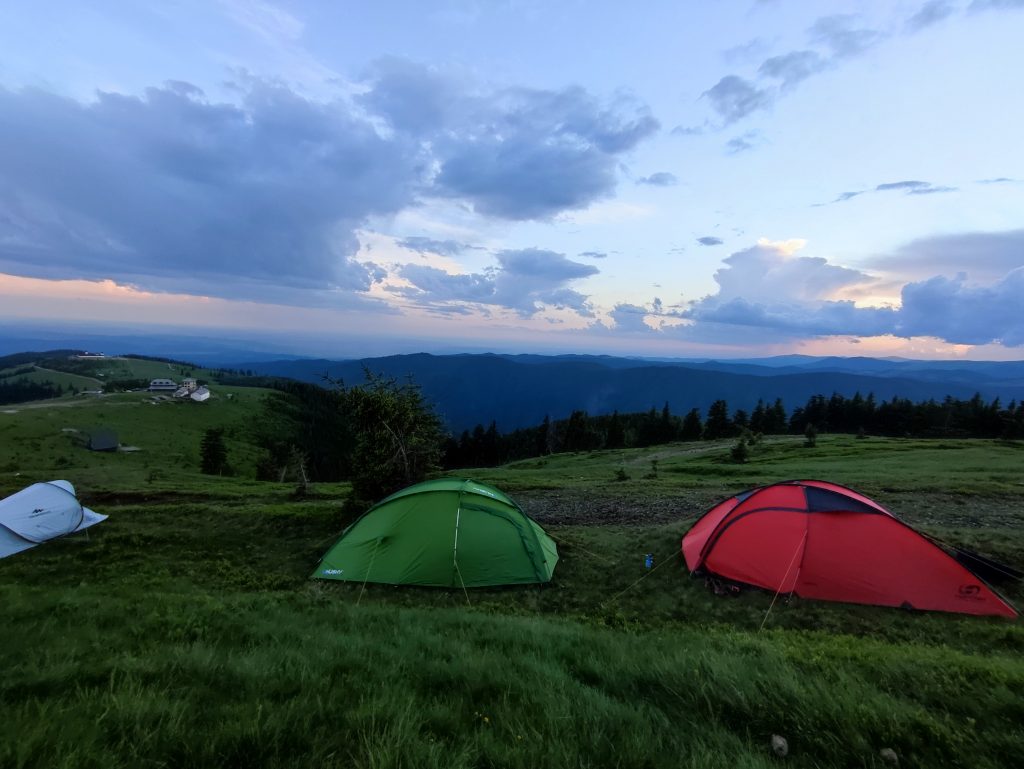 Prinși de peisaj, o ploaie de vară ne cam ia prin surprindere. E scurtă, răcoroasă, dar ne cam face ciuciulete. Haideți cu toții să băgăm o alergare până la cort. Are sens să zic că odată ajunși la cort, ploaia s-a și terminat? Cred că mai mult au curs apele pe noi pe sub pelerine.