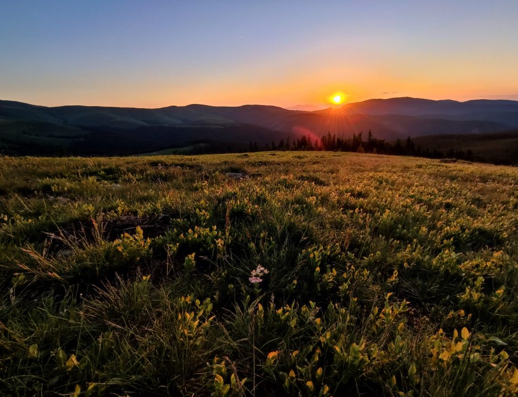 Mă trezesc dimineață și Mamarmot, ca de obicei, nu este în cort. Iar fuge după răsărit. Ies și eu să o aștept afară, că deja e prea cald ca să mai stai aici. După ceva timp, vine și ea împreună cu mama prietenei mele, și îmi arată fotografii cu soarele ieșind de după o culme și cu iarbă plină de rouă.
