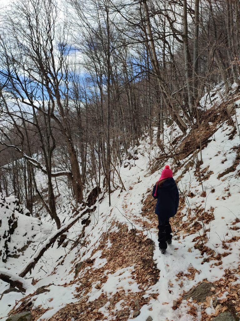 Ultima bucată de potecă, până la ieșirea din pădure poate fi dificilă atunci când zăpada este mai mare