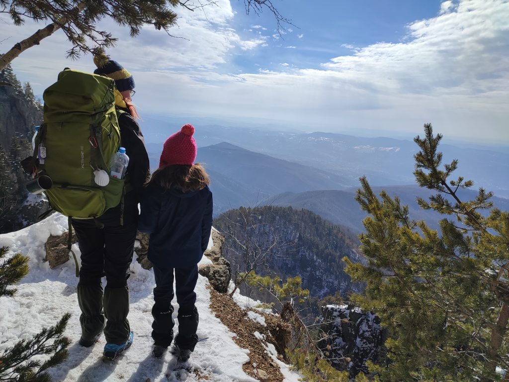 Mai urcăm, mai stăm, mă mai momește Mamarmot cu niște ciocolată și uite așa trece timpul. Dar întrebarea ce-mi răsună mereu în minte este : „Am ajuns măcar la jumătatea traseului?”, „Păi știi tu, marmotă, ceasul spune că am mers abia 500 de metri…mai avem până la jumătate..”. Bineee. Parcă mă doare spatele și fundul și încep să-mi pierd răbdarea. Părinții mă cheamă la poze la nu știu ce belvedere..nici măcar nu știu ce e aia dar mă duc și eu. Se vede frumos, într-adevăr.