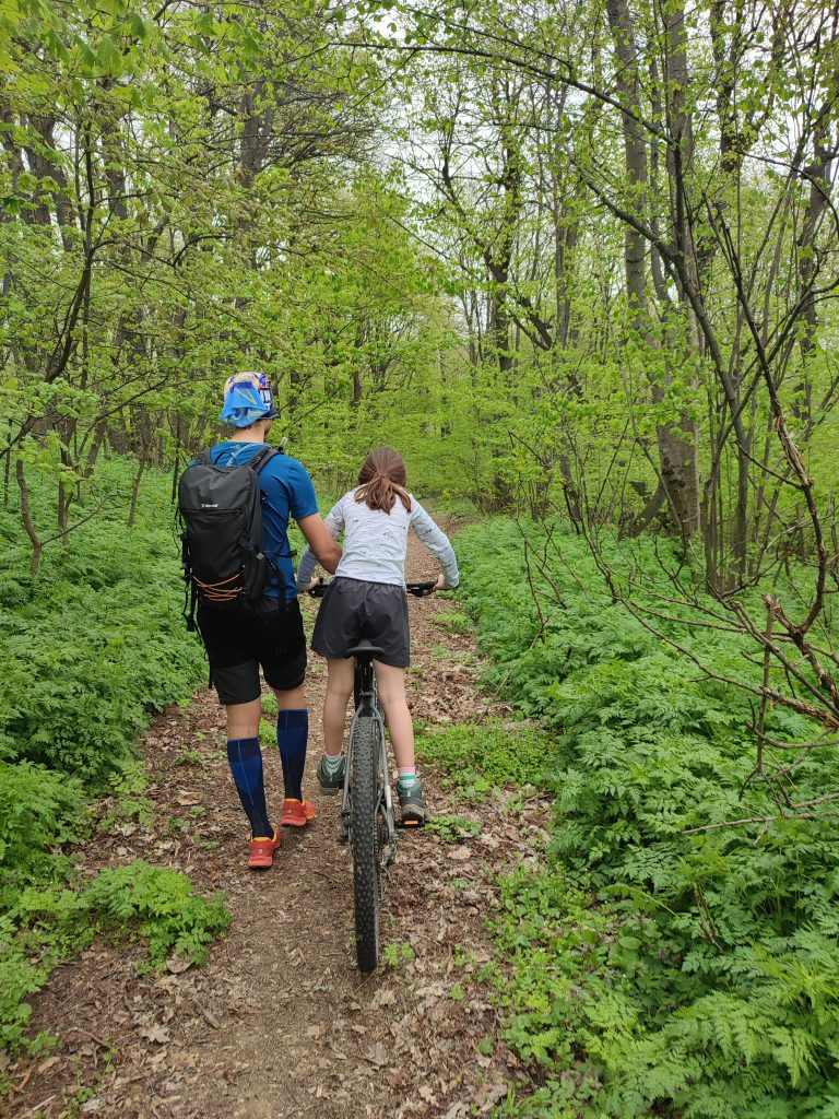 La un moment dat ne despărțim de tata, traseul de bicicletă urcând prin altă parte. Mai avem câte o pantă mai micuță, dar nimic prea serios.