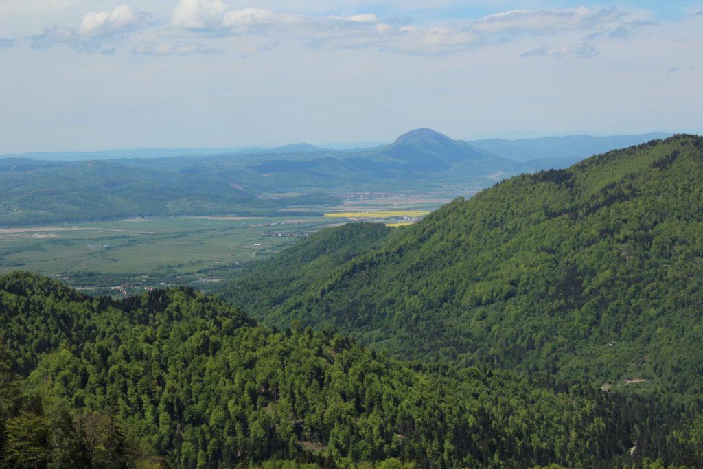 Traseul ne plimbă mult prin pădure dar ne dezvăluie și o frumoasă panoramă. De acolo, priveliștea se deschide și mai mult. Deasemenea, la cabană, peisajul pare desprins din povești.