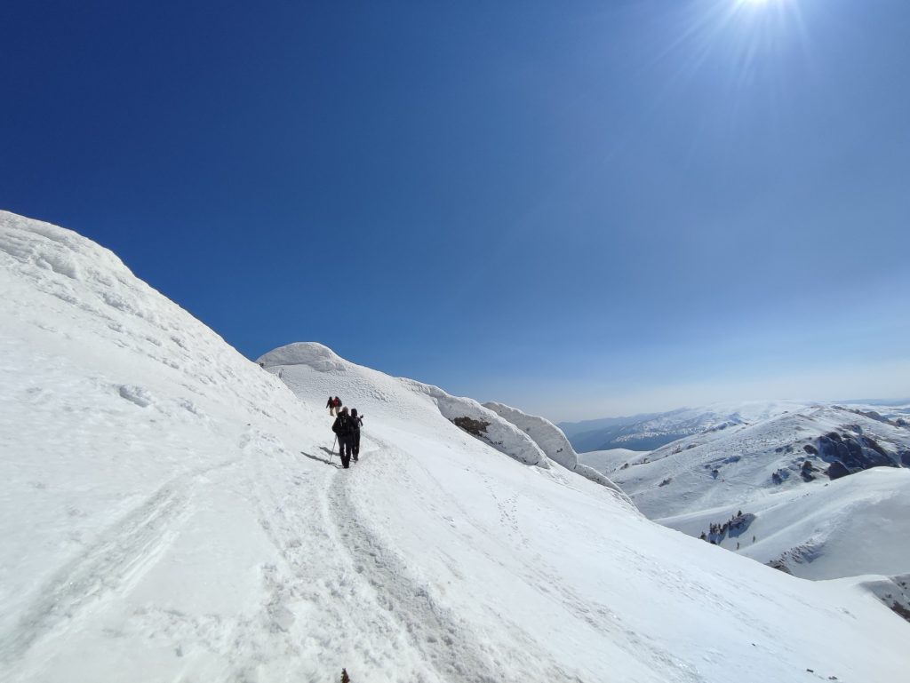 Așadar, de data asta au ales să facă un traseu mai lung, alături de niște prieteni și câțiva căței. Este un traseu pe care l-am făcut și eu cu ei, doar vara.