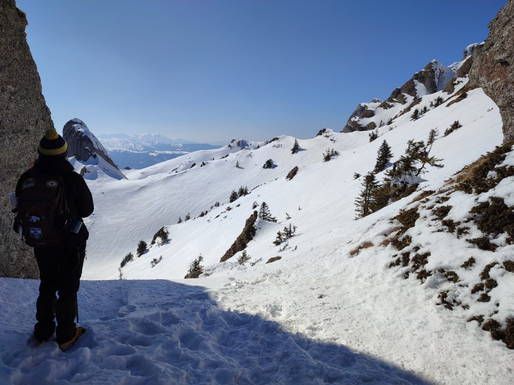 Ai mei au avut noroc să prindă o zi tare senină și au avut vedere către toți munții din jurul lor. Nici nu știu ce-mi place mai mult iarna. Că mă pot juca sau distra în zăpada sau cum pictează anotimpul ăsta totul în jur.